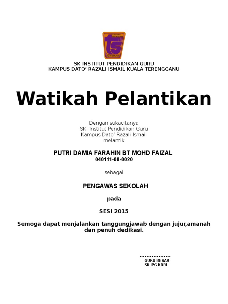 Format Sijil Watikah Lantikan Pengawas Pdf